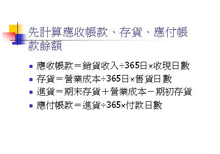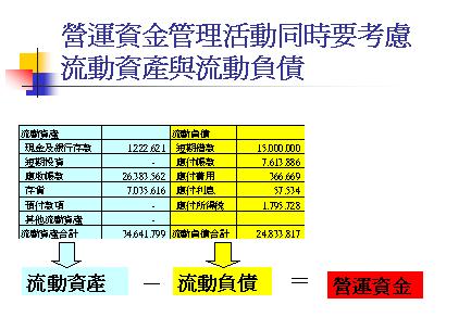 營運資金管理的第一要務是先計算應收帳款、存貨及應付帳款的金額。 然後不足的部分在想辦法籌措短期借款支應。