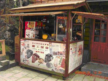 (金瓜石當地,太子賓館櫻花道上的礦工便當攤販車)
