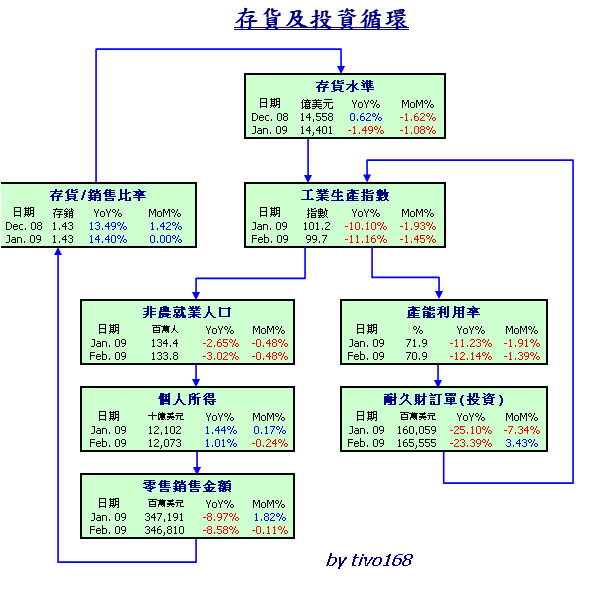 如果持續增加生產就會使就業人口增加,使個人所得提高,然後又再增加零售銷售,這個就是景氣回升的良性循環。