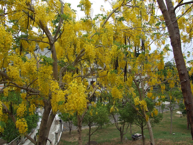 五月雪 六月有什麼? 六月下著雨,梅雨?! 不,是黃金雨! 阿勃勒在兩週內由枯木一下子開滿了黃色的花,然後就隨風而下! 股市不也一樣嗎!? 在黃金雨的背後,鳳凰花也開始綻放。 這兩種花式傳統南台灣的學生守護神! 據說如果阿勃勒與鳳凰花盛開,當年度的畢業生就比較!!??