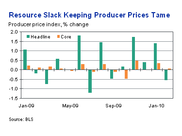 由於二月風雪,工業生產疲弱,產能利用低,所以生產者物價指數負成長,目前原物料的壓力不大。