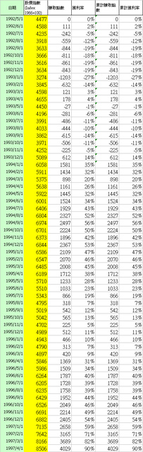 18年來複合報酬率為7.2%,加上配息及存款利息應高於此數。最高賠率出現在1993年1月-27%。