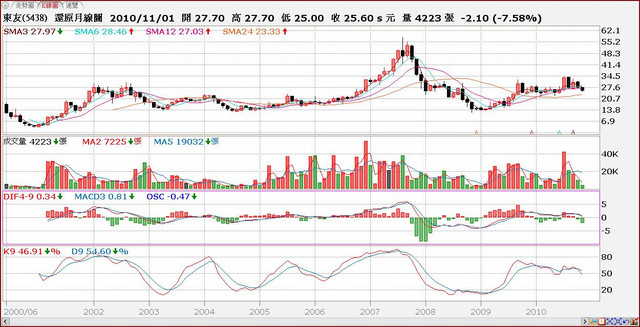 看它的股價,在同樣的期間,東友的股價是不斷的漲,而這家公司卻是不斷的跌,兩者完全是顛倒過來的。