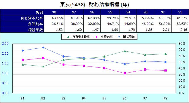 東友公司從92年到96年的過程中,自有資金持續由43.3%提高到67.98%,連續幾年都不斷的在上昇,代表它的財務結構不斷的在改善。財務結構的改善,如果不是跟股東現金增資,就是自己賺錢盈餘所產生。