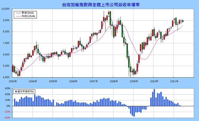全體上市公司營收年增率轉為負成長。長期營收趨勢線開始持平。如果六月份的數據仍然無法反轉向上,可能第二季的財報不好看。謝謝TIVO提供的資訊