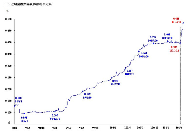 交通部周四宣布電價調整方案後,昨天隔拆利率突然竄高,加上央行主動發布新聞,引發金融圈高度關注,揣測今年CPI若有失守2%大關之虞,央行可能在今年第三、四季啟動升息來壓制通膨。