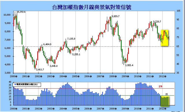 連續八個藍燈,一般而言藍燈區顯示股市不在相對高點。