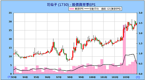 花仙子在102年的稅後淨利達2.29億元,比前一年度10.6億元高出很多,於是就看得出來可能是非經常的盈餘,102年確實有一筆1億元的處分資產利益。