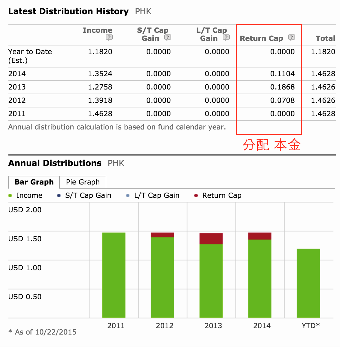 PHK過去因為葛洛斯的光環,享受市場50%的溢價,我們當時就發現溢價太高,而且他分配本金,自從葛洛斯走了以後,基金經理人宣布更改配息比例,操作比較正常但是也因此讓PHK的市場的溢價下降,股價大跌,幾乎腰斬。